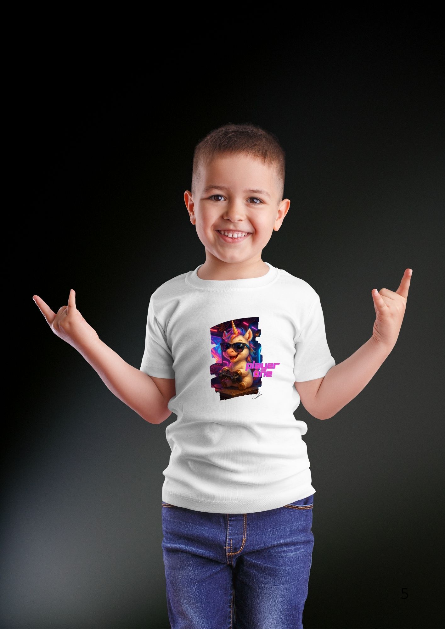 Licorne au style décontracté, lunettes et manette intégrée